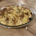 - Die Endstücke der eingelegten Brötchenscheiben beiseite legen und mit den normalen Scheiben anfangen. Damit den Boden der Auflaufform auslegen. Diese dann mit einer Schicht Äpfeln belegen. Auf diese Schicht die Hälfte der Cranberries verteilen. Dann eine zweite Lage Brötchen auf die Äpfel legen. Eine Schicht Äpfel darüber schichten, wieder Cranberries drauf verteilen und dann eine letzte Schicht eingetauchter Brötchenscheiben. Die Endstücke der Brötchen nun mit der Schnittkante nach oben auf den Auflauf legen.